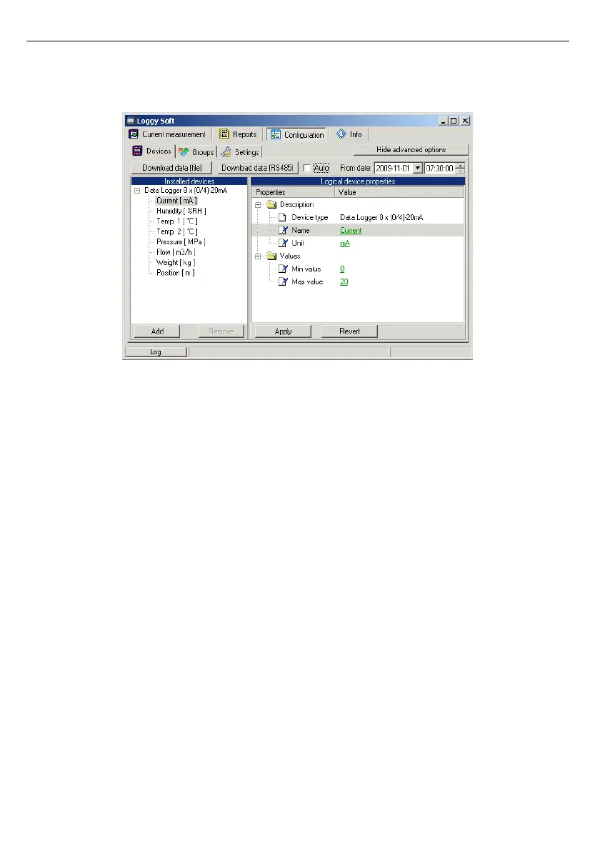 Fig. 3.16. Downloading data using RS-485 interface (advanced options active)