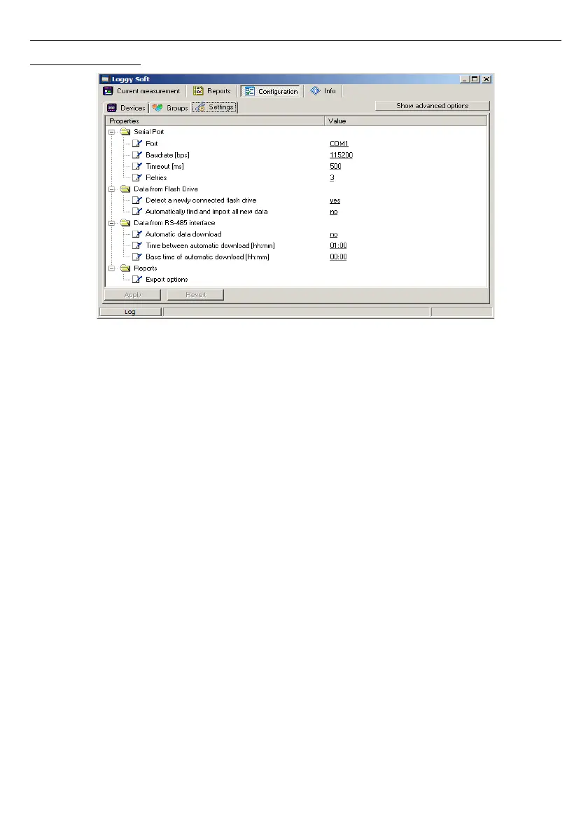 Fig. 3.19. Configuration - Settings tab (advanced options hidden)