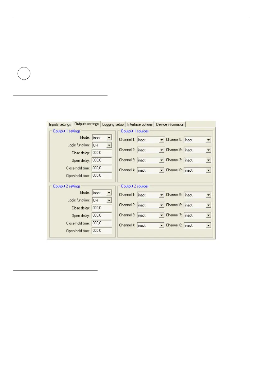 This tab contains options for configuring device outputs. Detailed description of individual