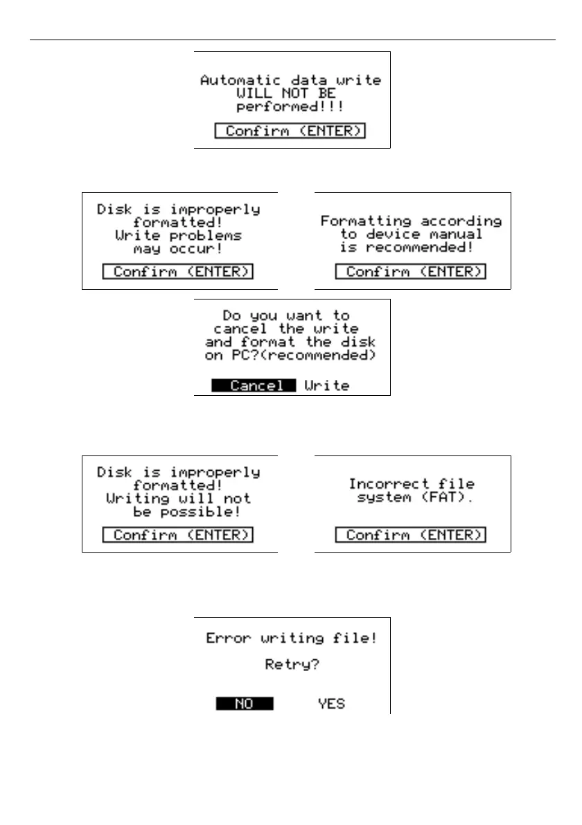 If some error occurs during measurement writing, one of following messages will appear: