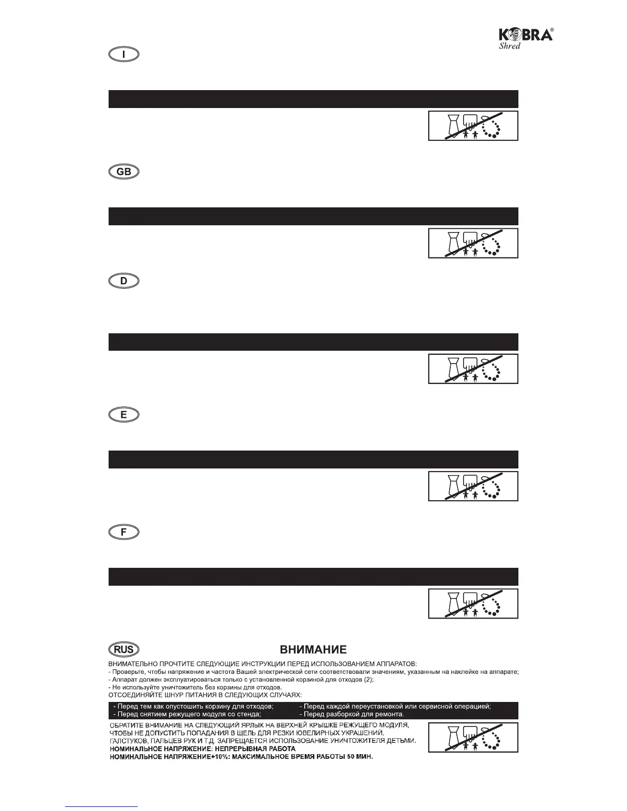 LE INCIDENTS: INTRODUCTION DE BIJOUX DANS LE DESTRUCTEUR, DE CRAVATES OU LES MAINS DES ENFANTS.