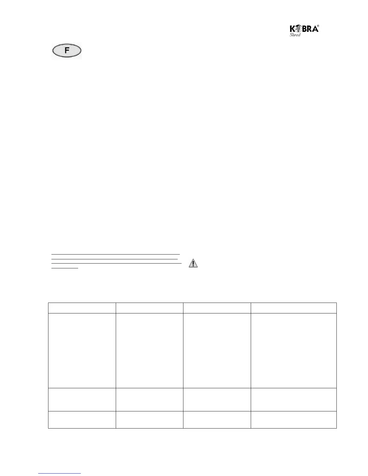 Ne pas ouvrir la partie supérieure du destructeur de documents dans le but de le réparer. Risque de choc électrique et annulation de la garantie.