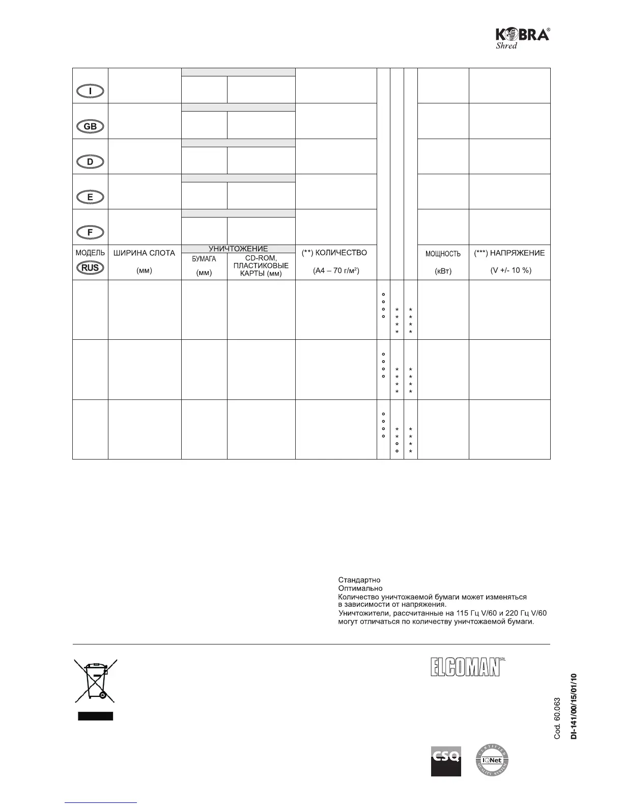 Macchine destinate a mercati per 115V/60Hz o 220V/60Hz,