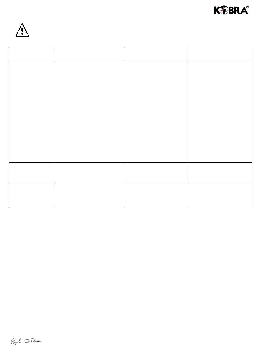 Se non riuscite a risolvere il problema in questo modo, contattare il rivenditore Kobra a Voi più vicino.