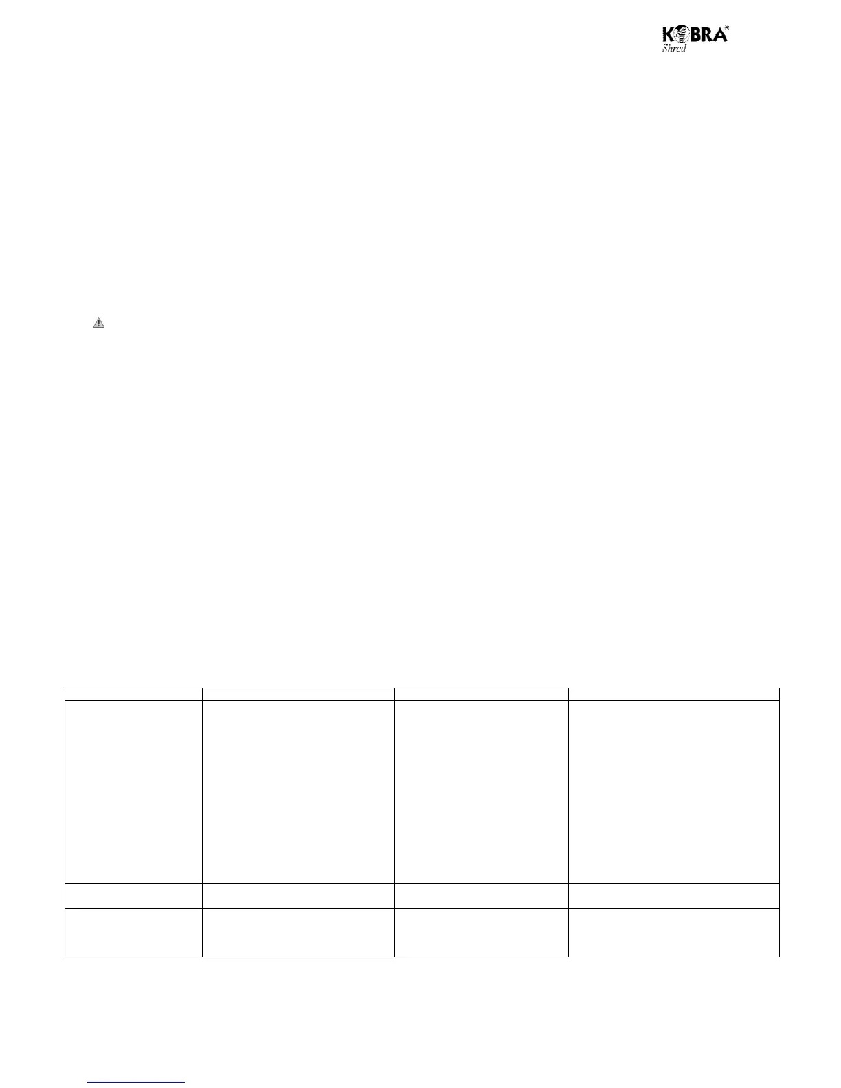 Never open the shredder head to try to repair it. You could expose yourself to the risk of severe electric shock and invalidate your guarantee.