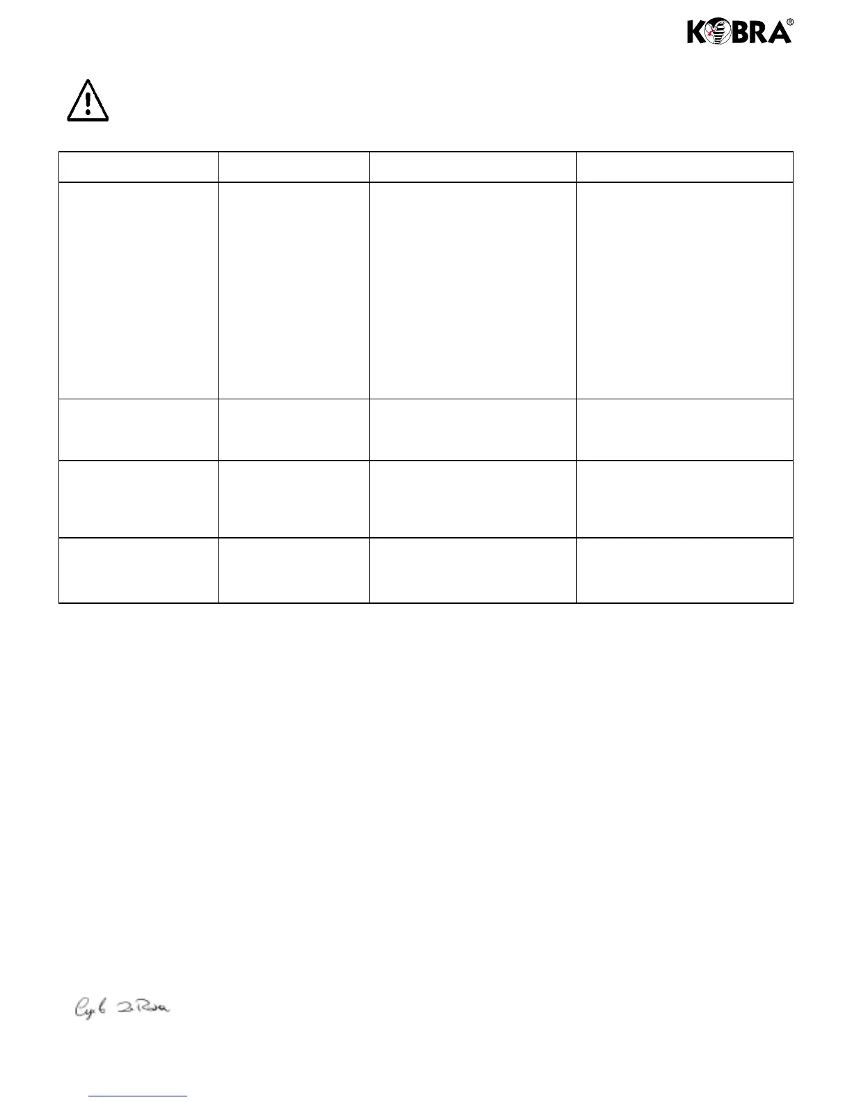 If you are unable to solve the problem this way, contact your nearest Kobra dealer.