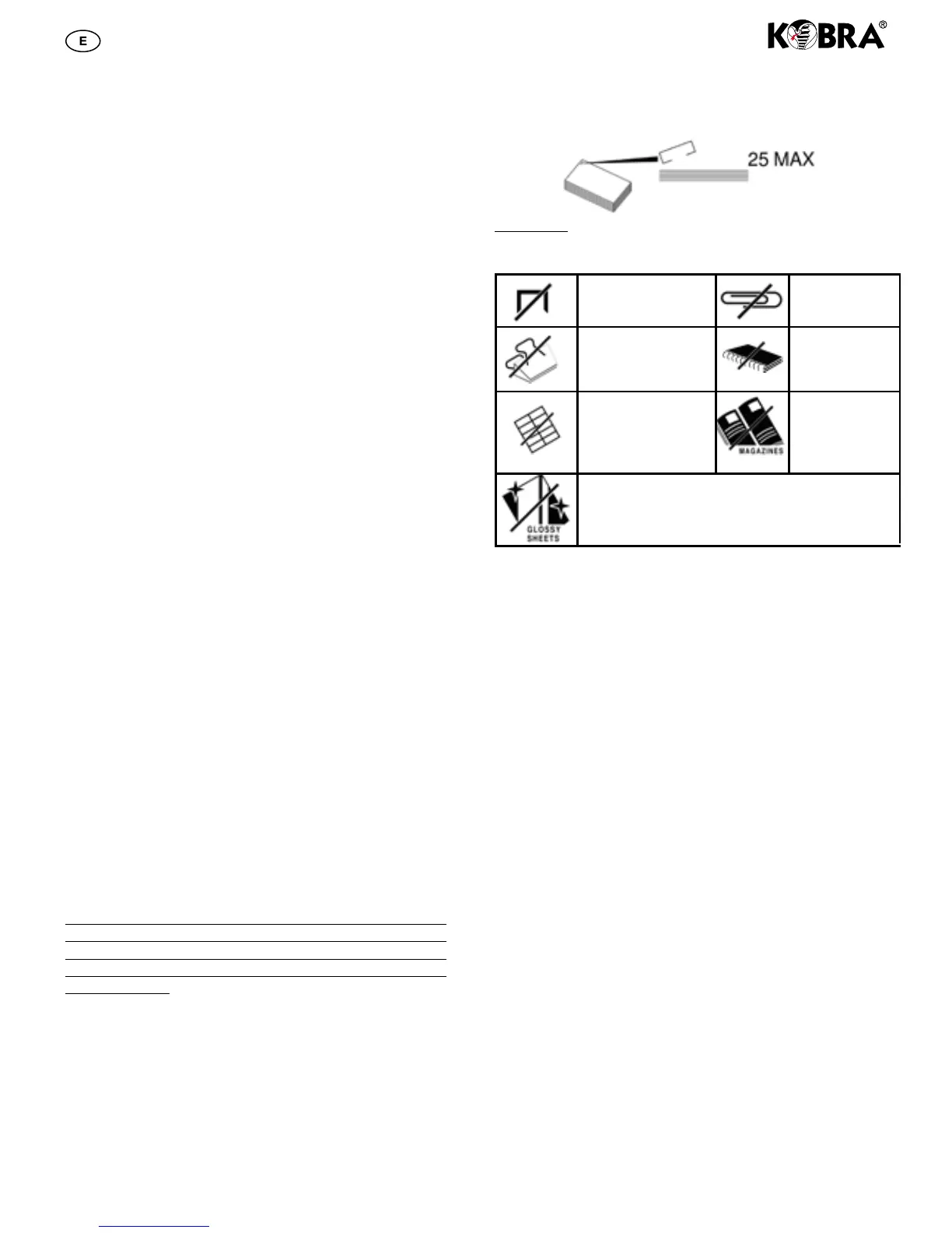 Kobra AF+1 NO destruyen los siguientes tipos de documentos