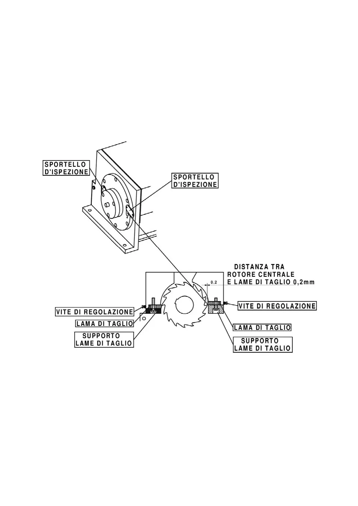 sportello dì ispezione) tra rotore centrale e lame di taglio.