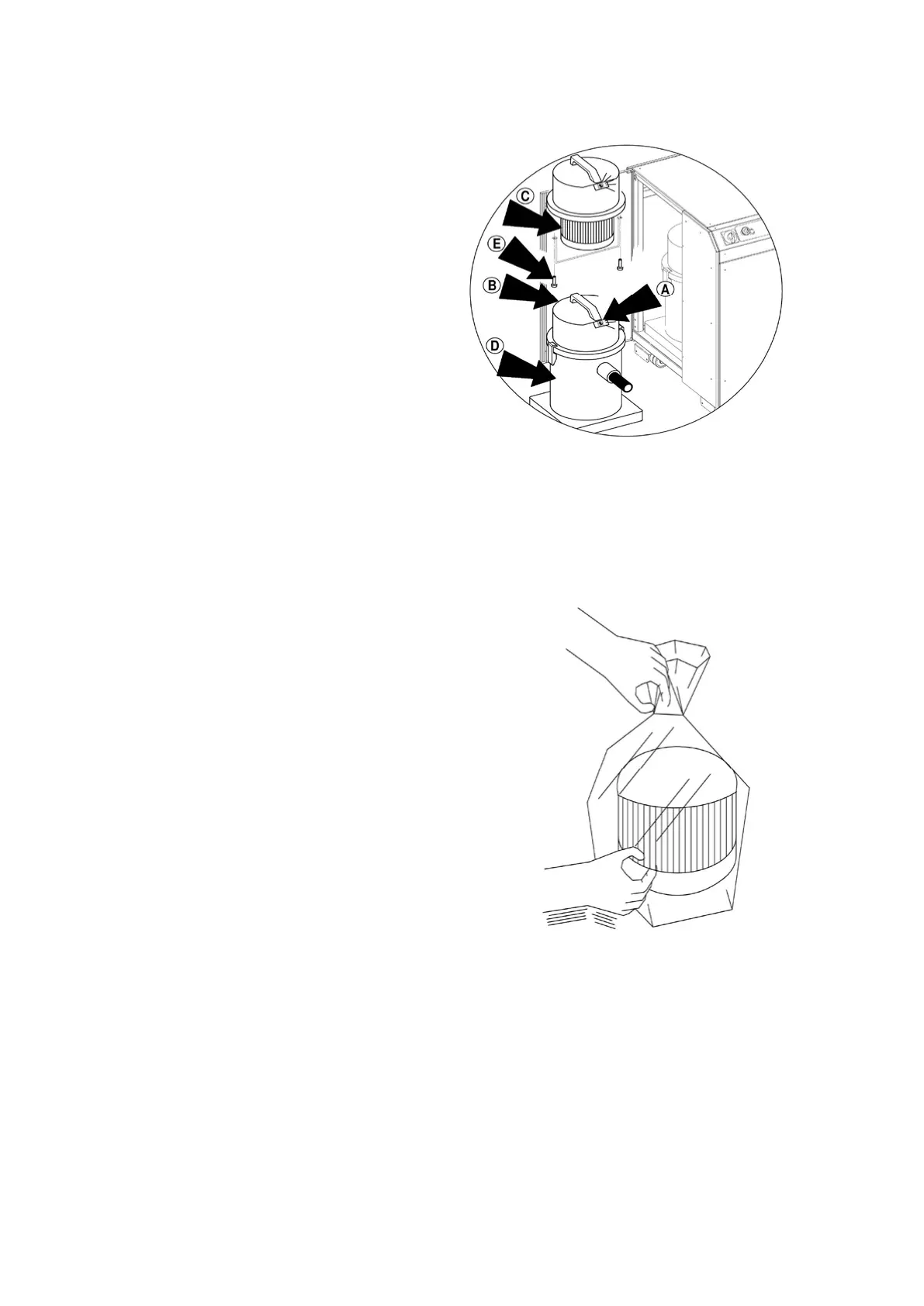 - Remove the HEPA filter cartridge “C” by