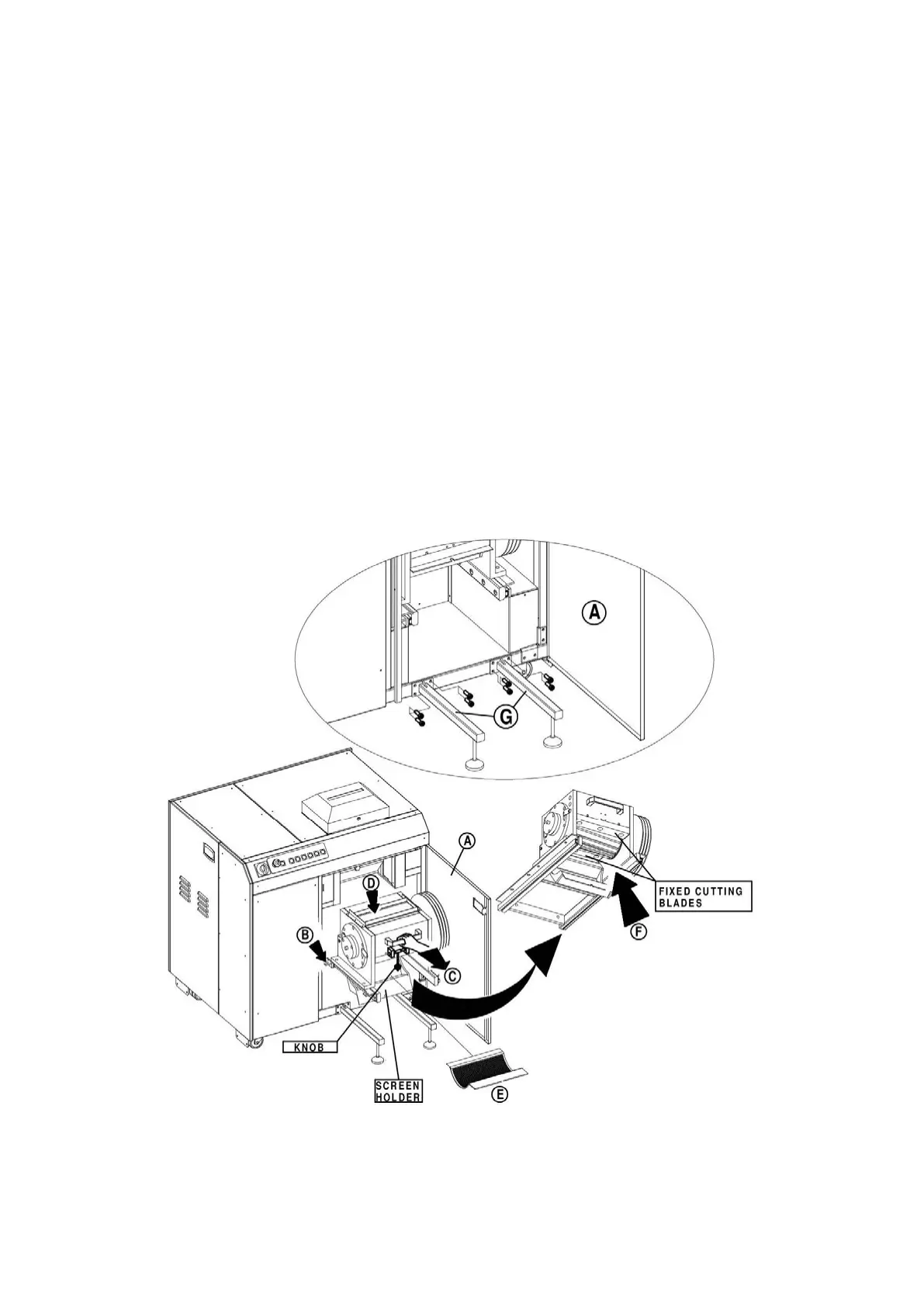 - Visually inspect the condition of the fixed cutting knives as shown in figure “F”, then check