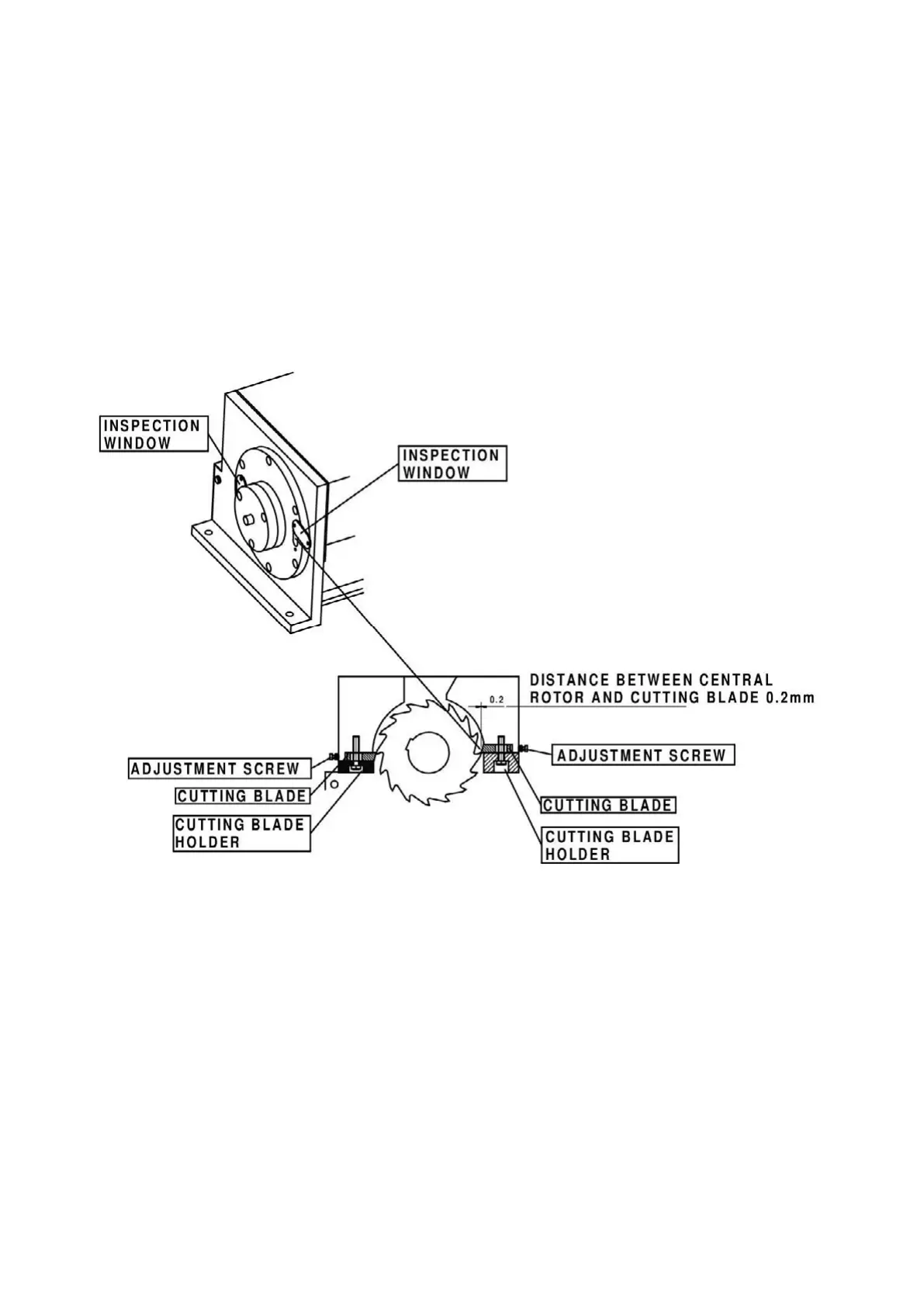 inspection window) between the central rotor and the cutting blades.