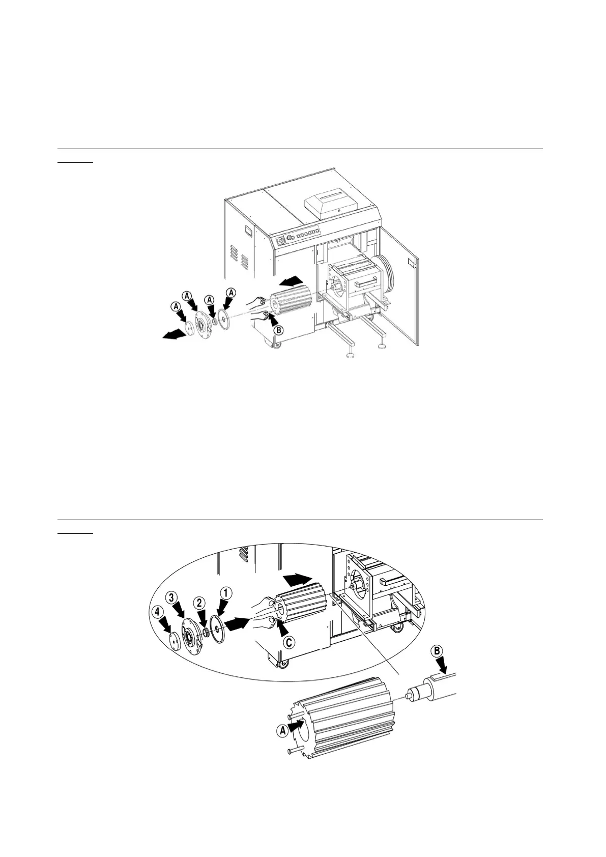 - Entfernen Sie den Flansch “A” durch Lösen der Feststellschraube