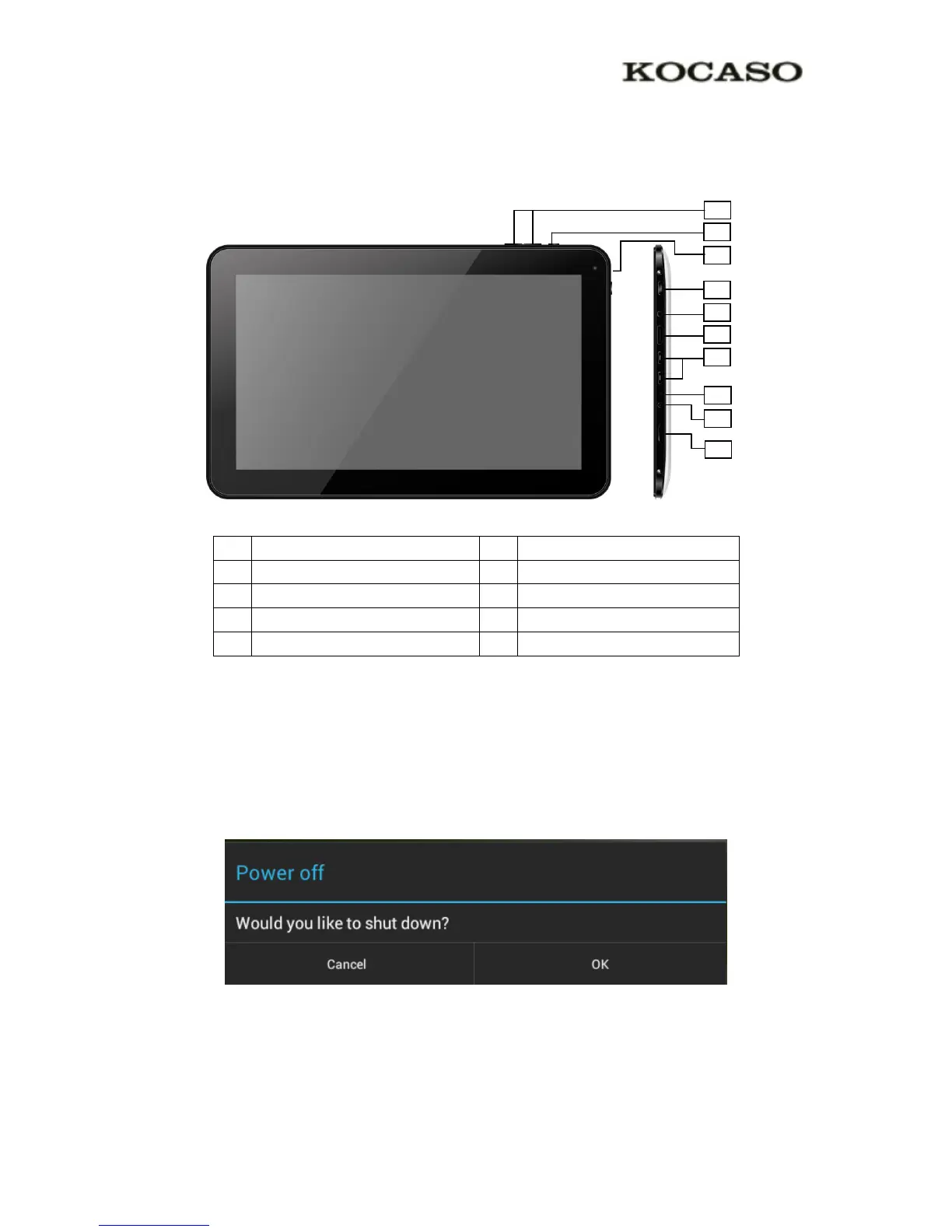 KOCASO Tablet - Product Basics; Buttons and Connections; Start Up and Shut Down
