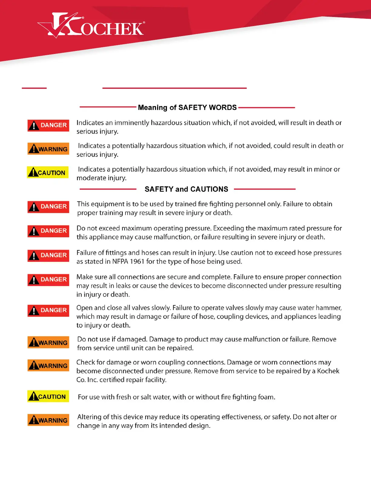 Kochek 70K - Safety