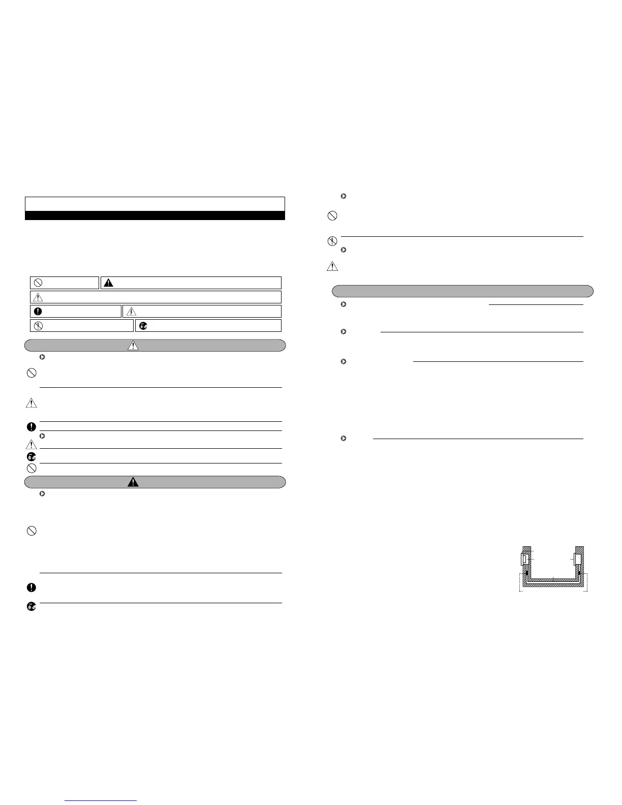 ·Do not install this unit near the water and dust, for example, in a bathroom or near the washing machine. It caused fire and electric shock.