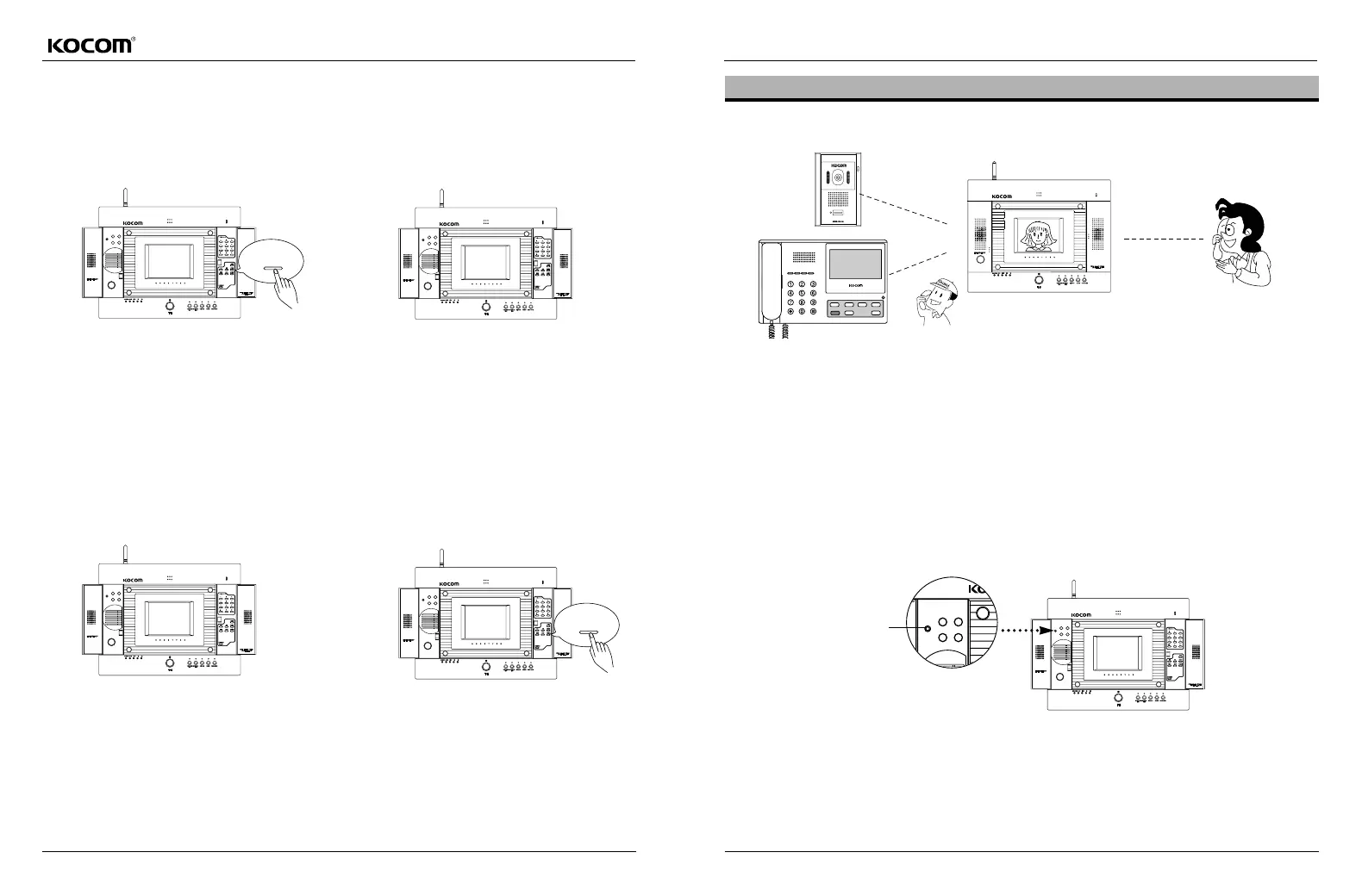 In case of calls from Gate camera or guard, or incoming telephone call, user can communicate with other party using