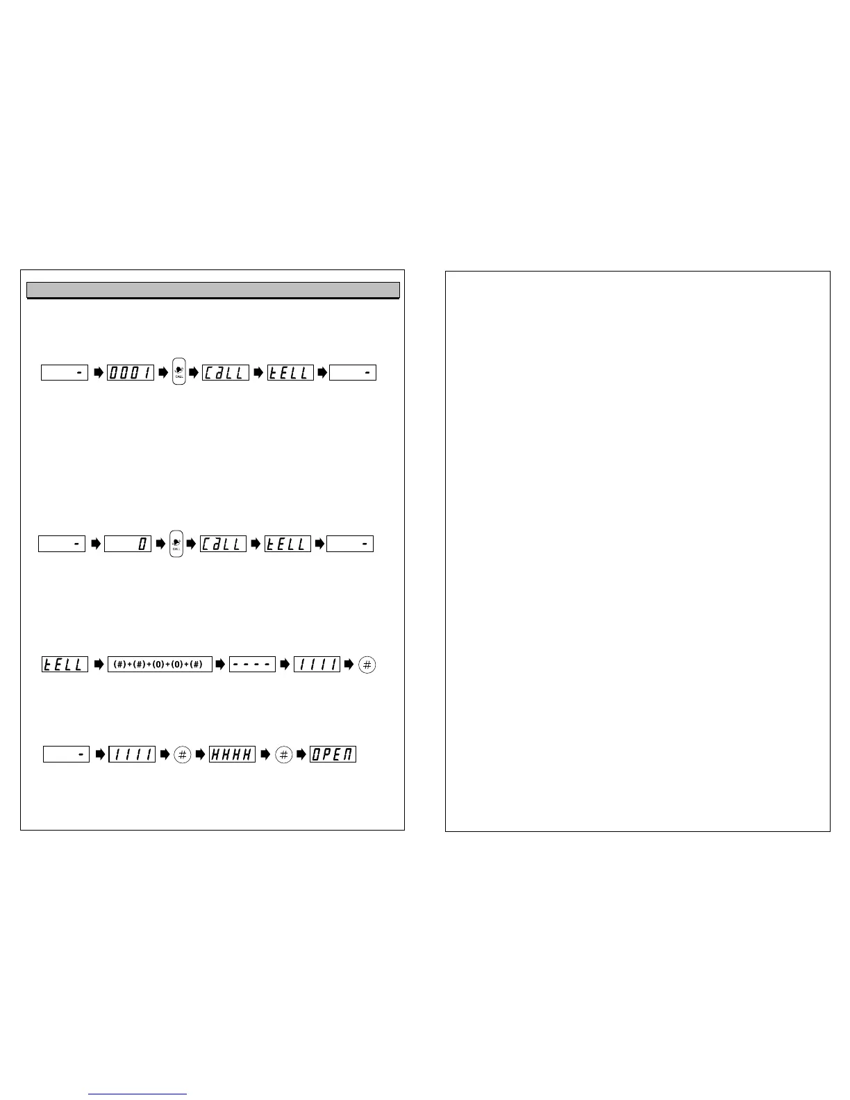 Pressing “house number + # + password + #”designated by the house, door is automatically opened.