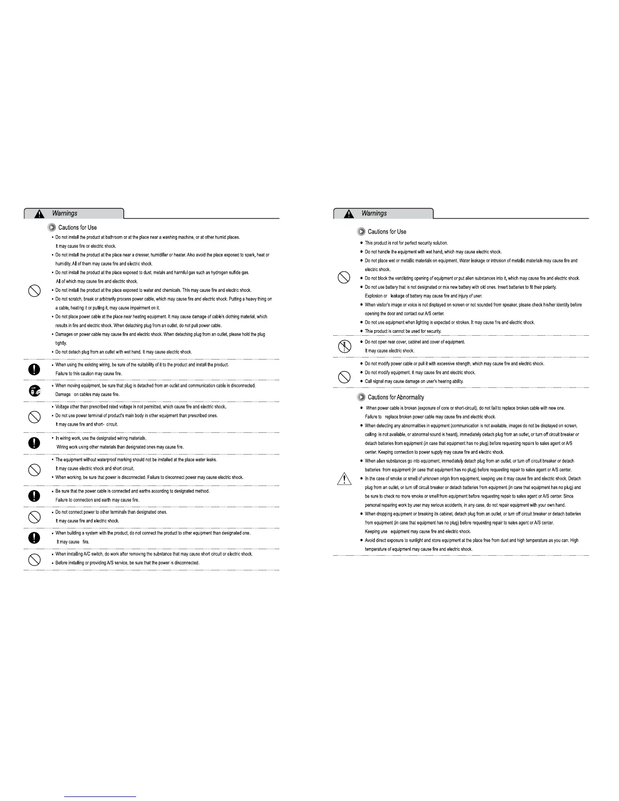 KOCOM KVM-301 - Further Safety Warnings; General Usage Warnings; Abnormality Handling