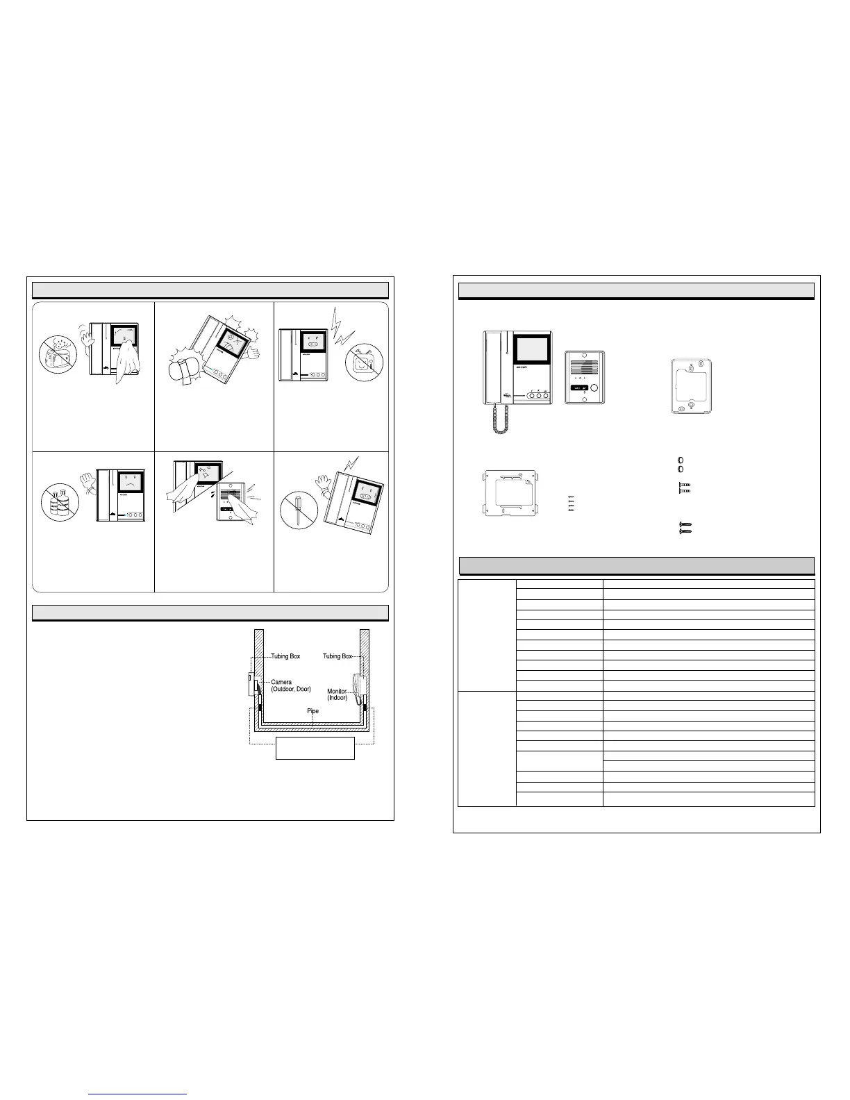Do not install monitor and camera in locations subject to
