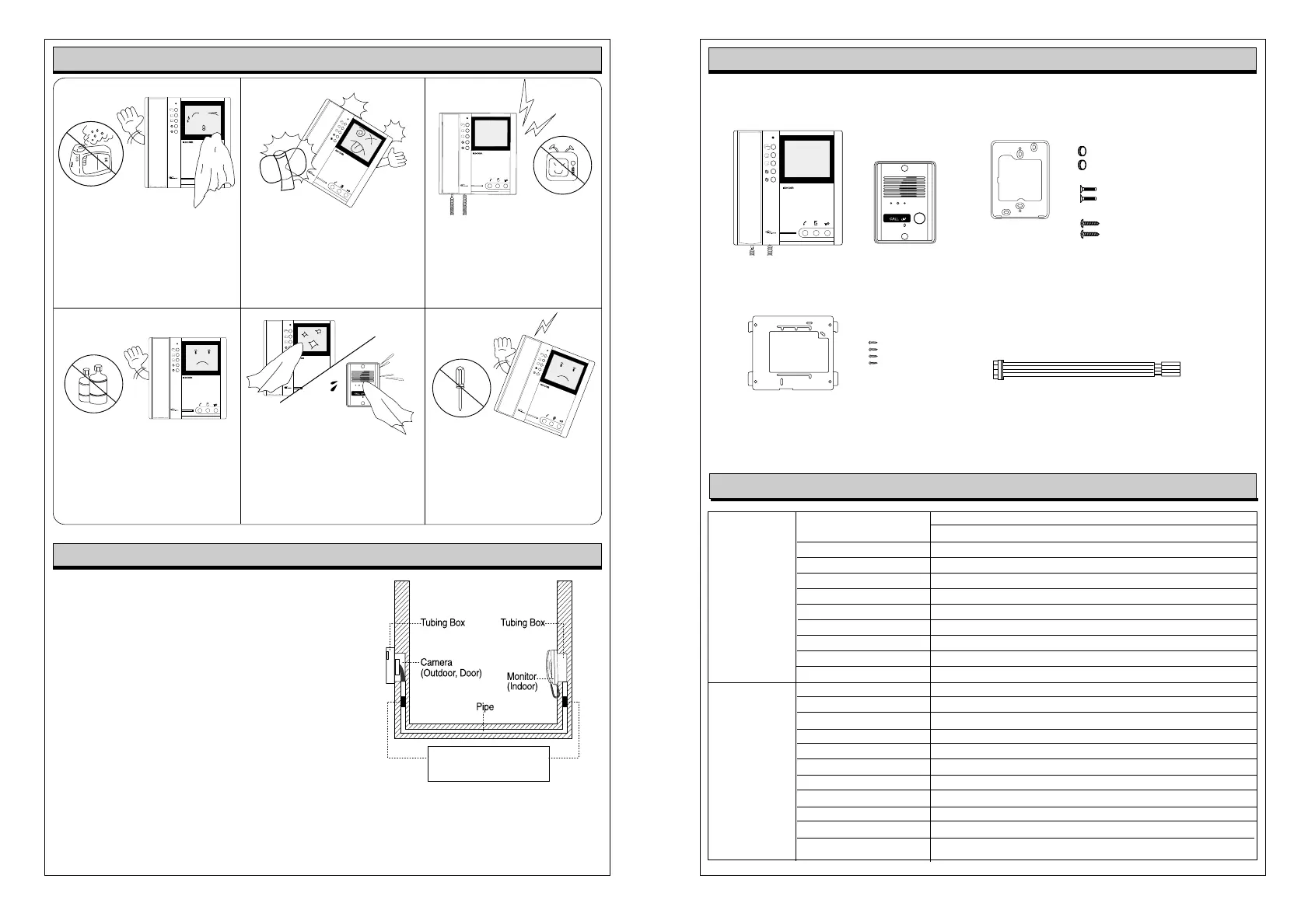 Do not install monitor and camera in locations subject to