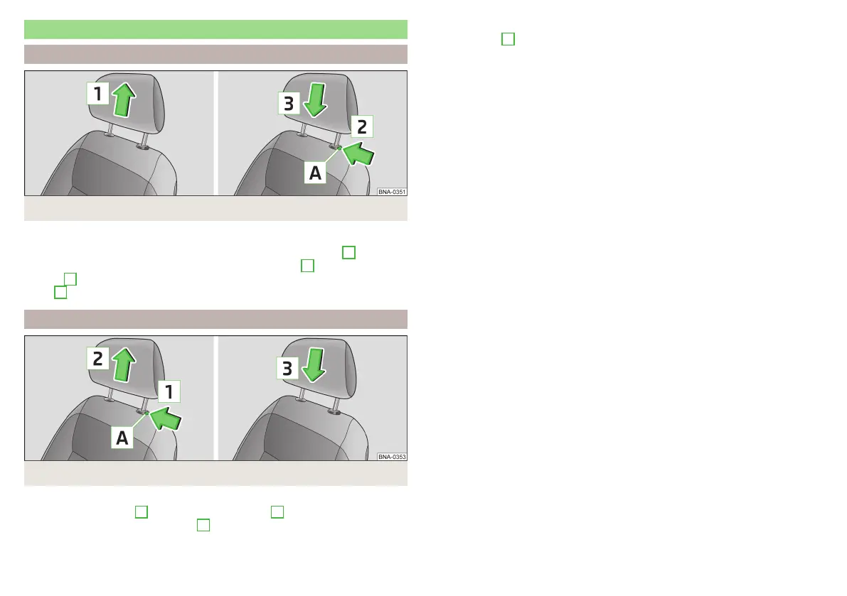 To insert the headrest, push the headrest into the seat backrest in the direc-