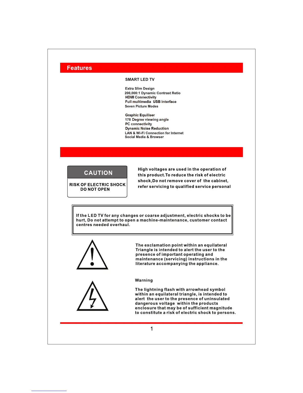 Kodak 40FHDXSMART - Features; Safety Information