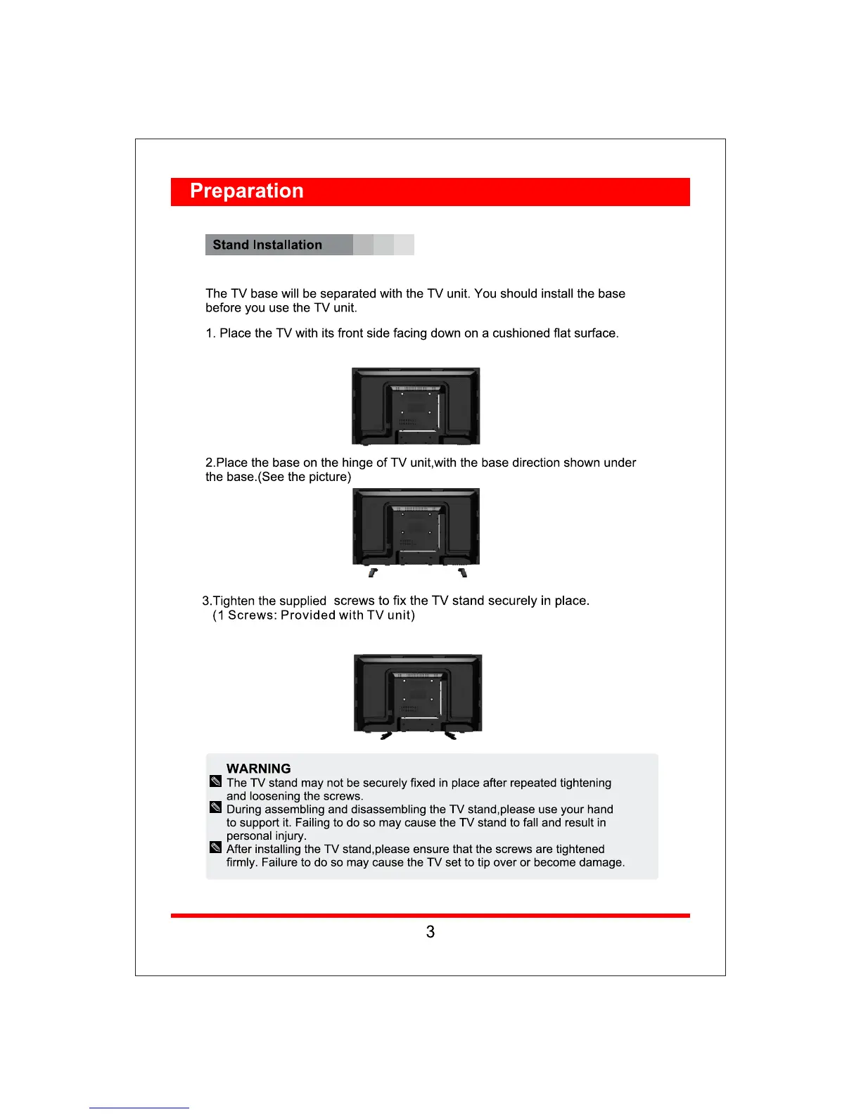 Kodak 40FHDXSMART - Preparation; Stand Installation