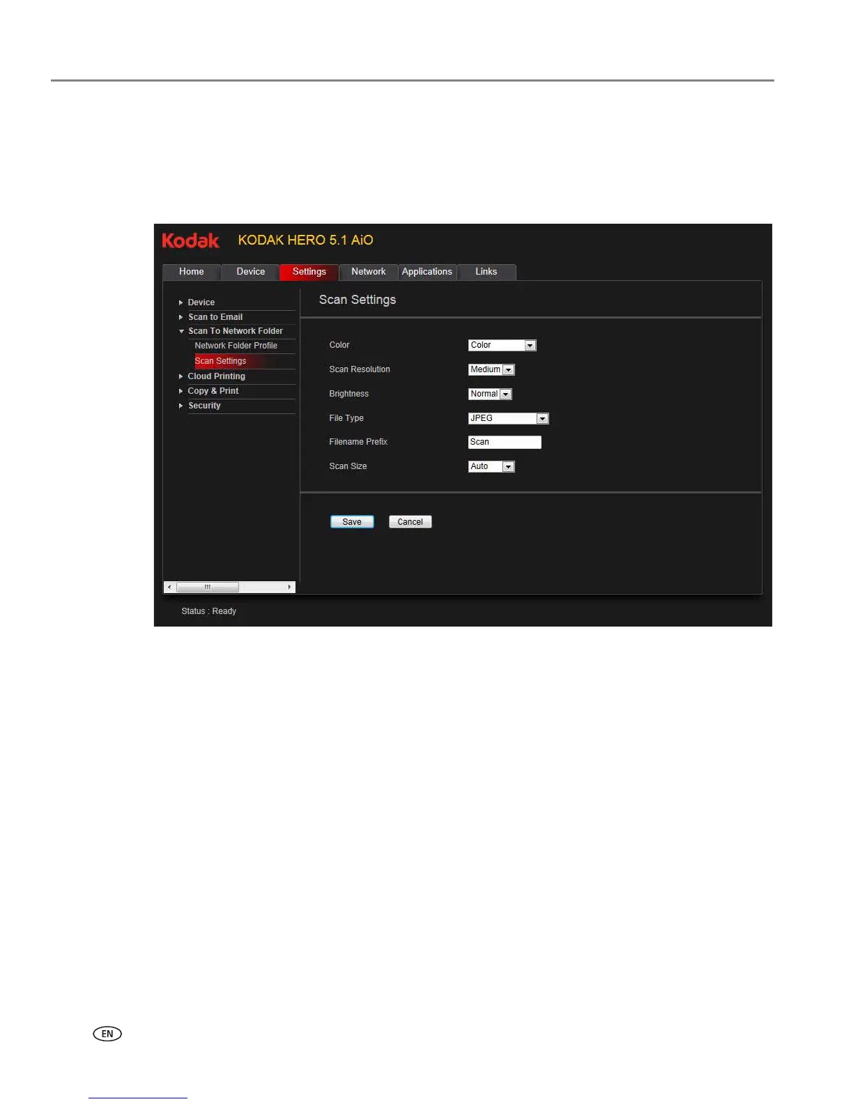 2. Select the scan settings that will be used for all scans sent to a network folder.