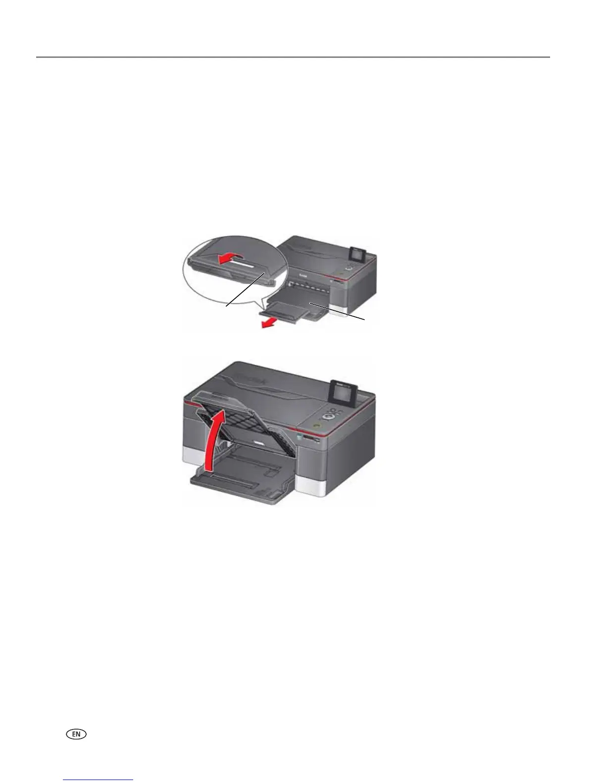 1. Pull out the paper output tray extender until it is fully extended, and move the