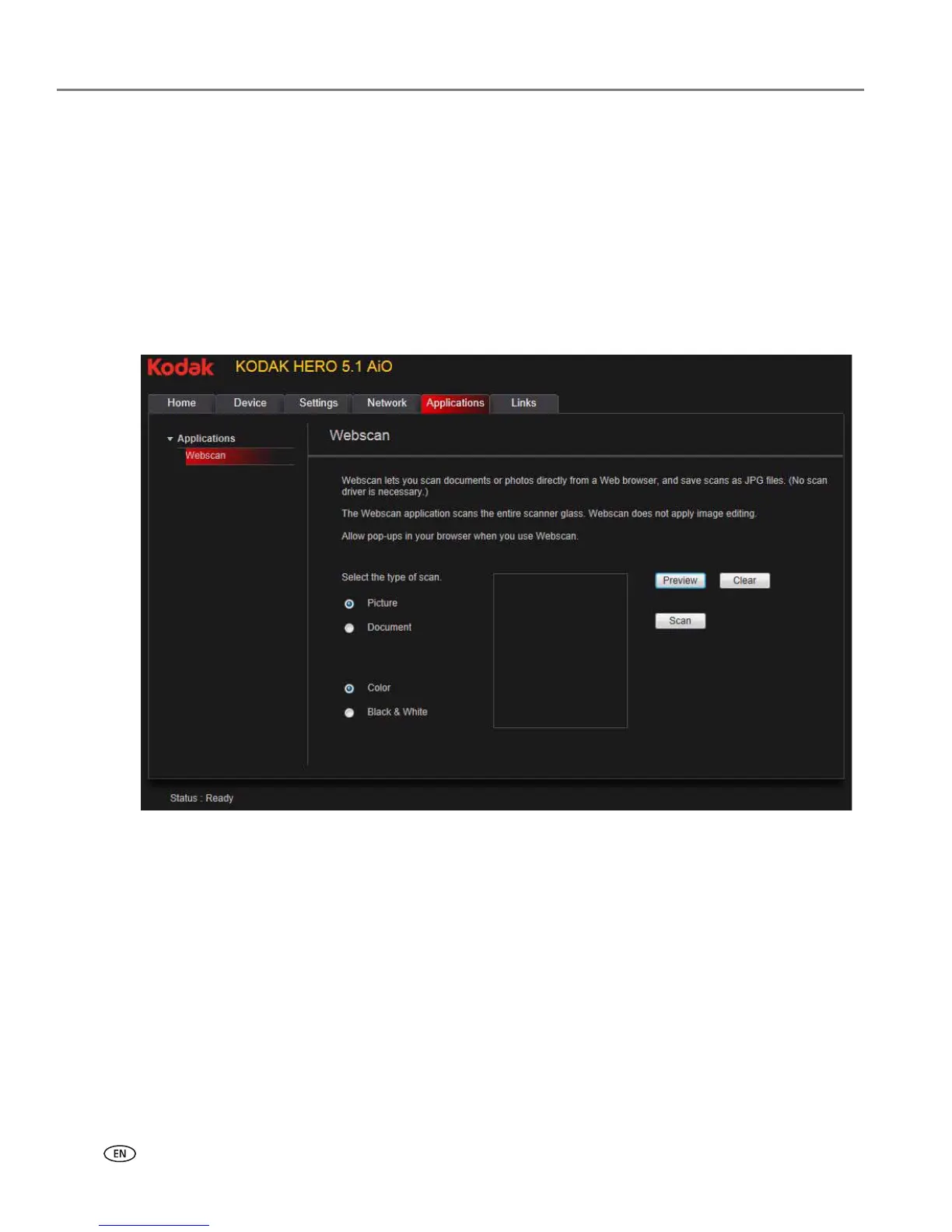 Scanning from the Online Printer Management Tool