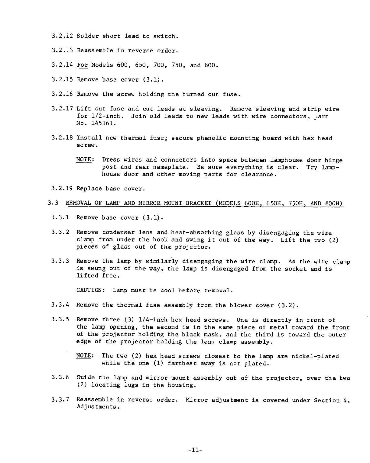 Kodak 650H - Lamp and Mirror Mount Bracket Removal