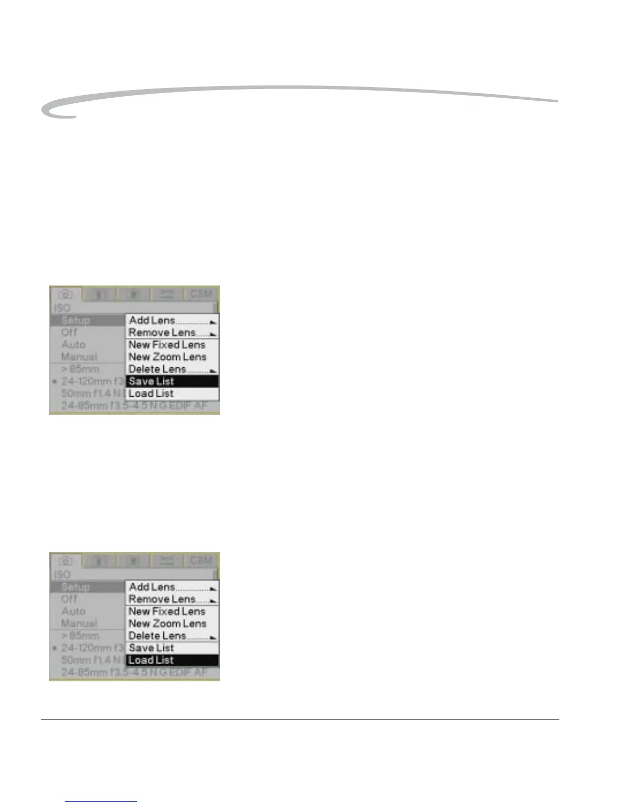 2. Choose Lens Optimization from the Capture menu, choose Setup, then