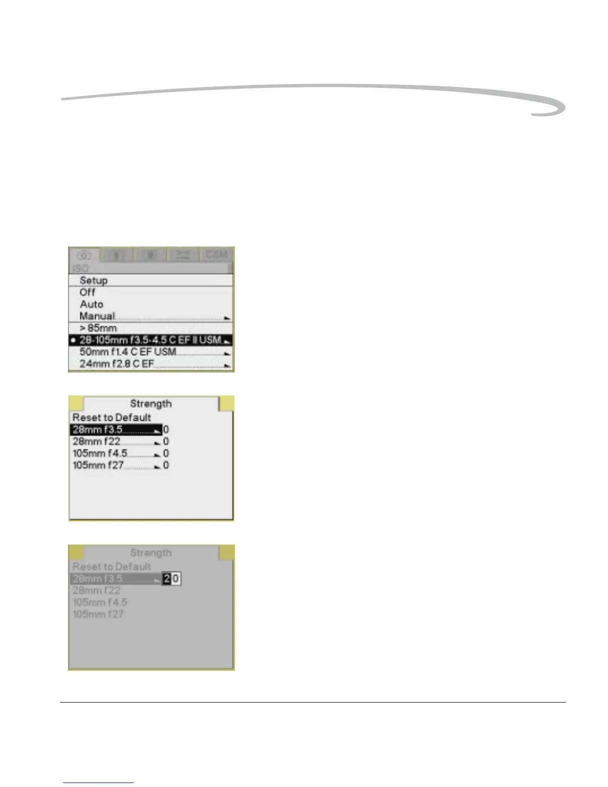 Once you determine the optimum strengths for a lens in Photo Desk (see
