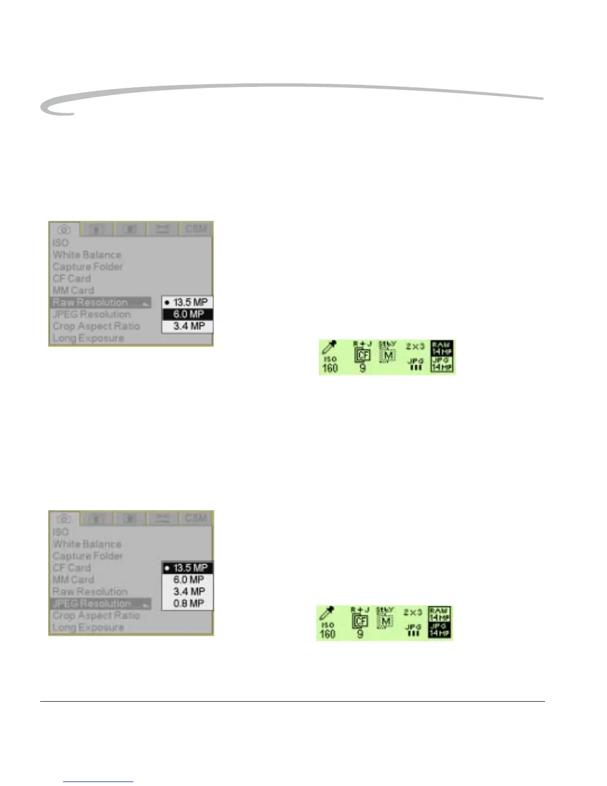 Setting Raw Resolution There are three resolutions available for Raw files:
