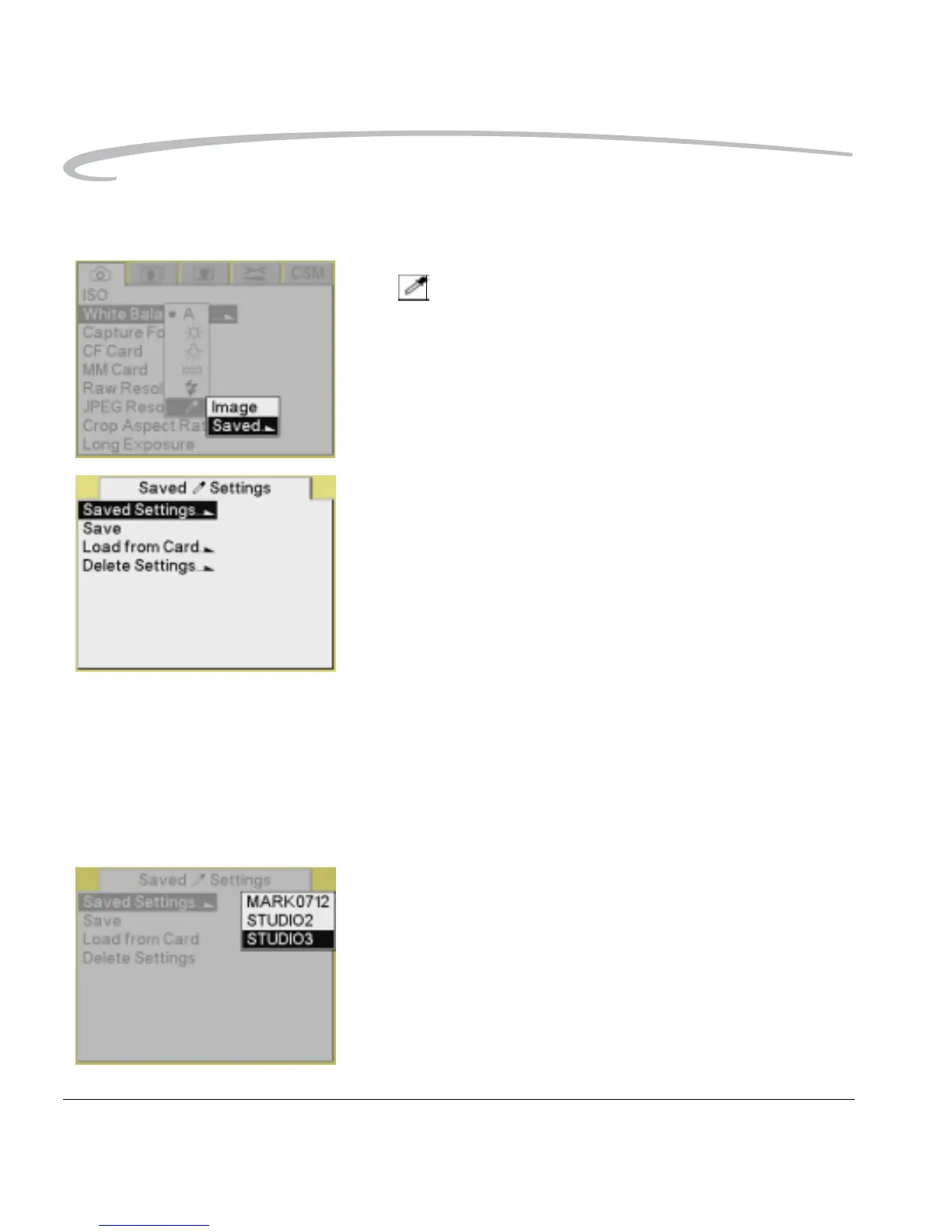 1. Choose Saved Settings from the Saved Settings menu, then highlight a