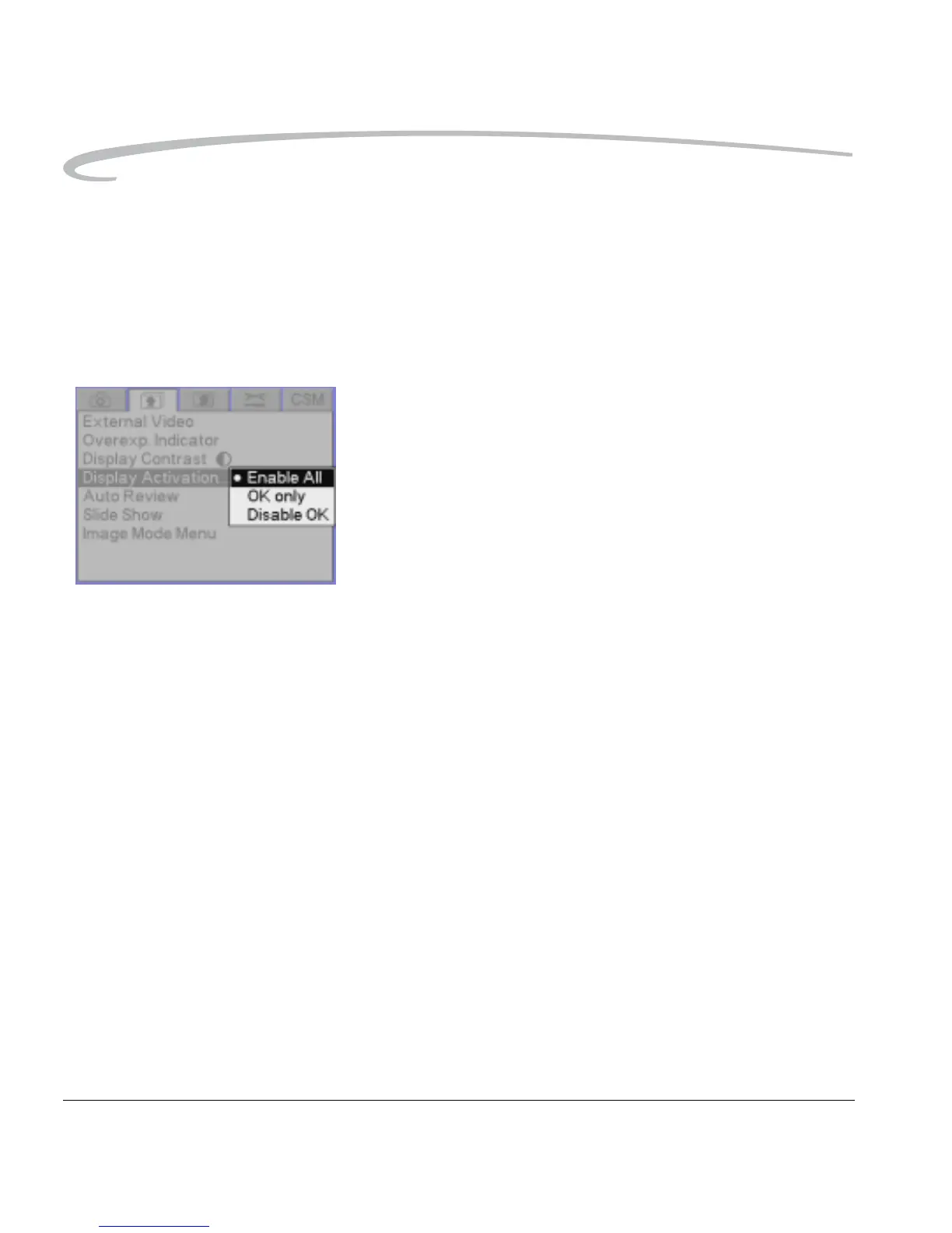 Activation menu. Press the top or bottom of the Five-way control to