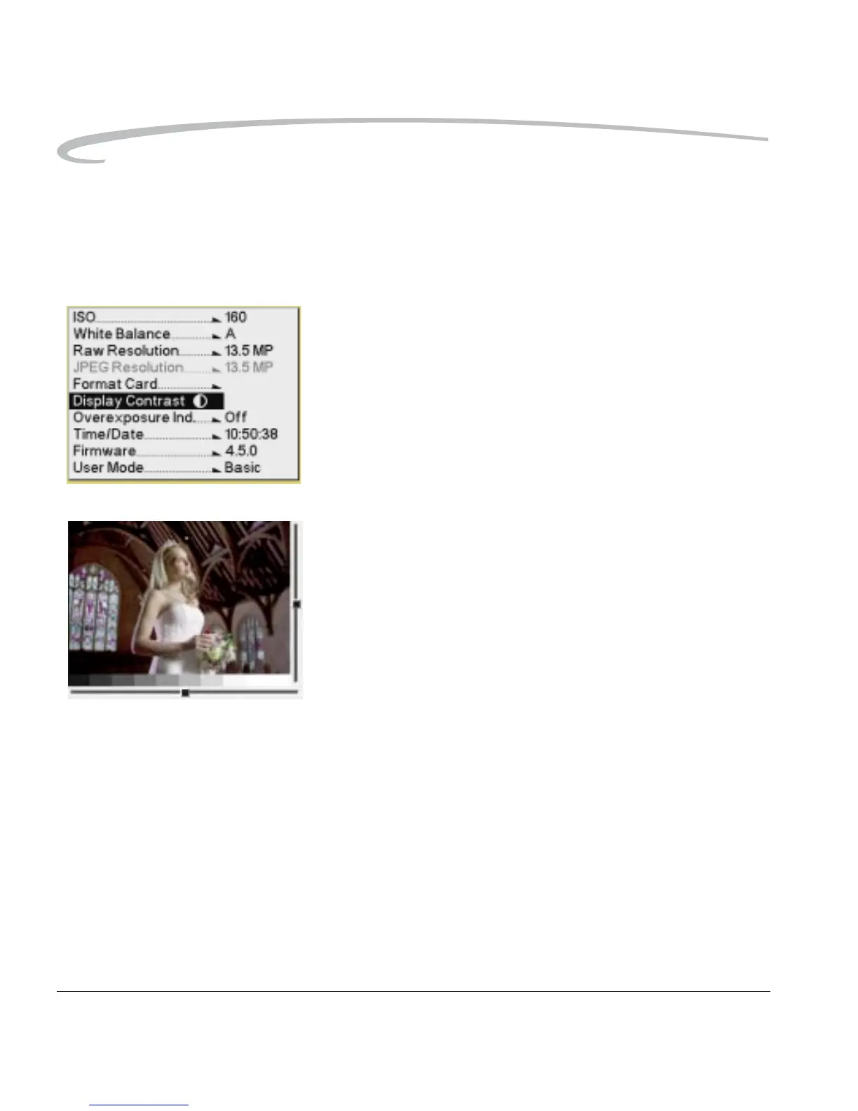NOTE: Changing the contrast does not affect the stored images, only the
