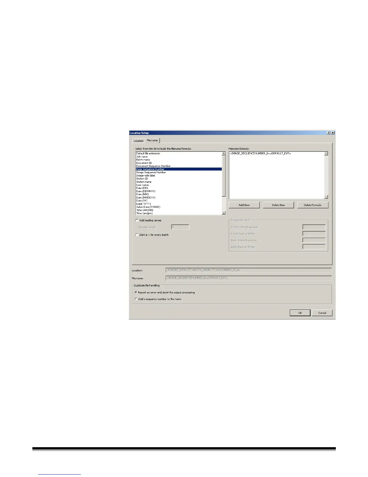 Procedures for creating Location formulas and File name formulas are the