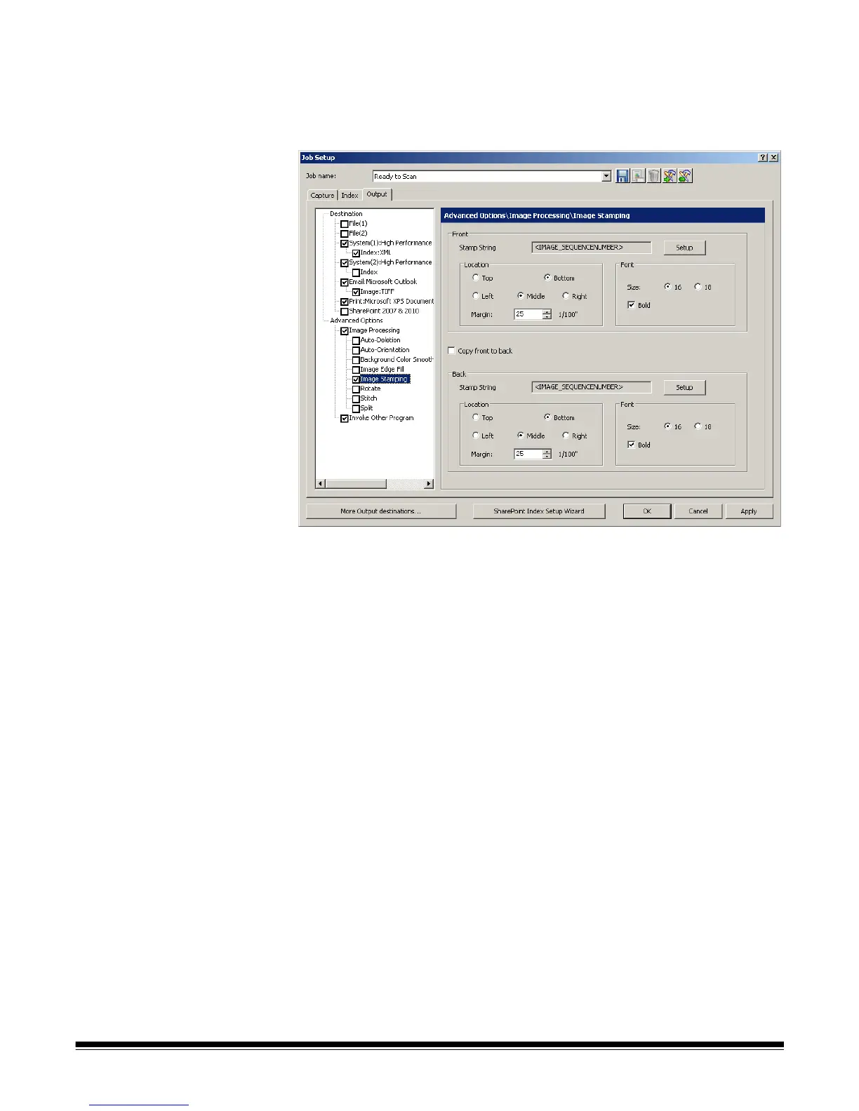 numbers and job or batch name into the scanned image. The Image Stamping