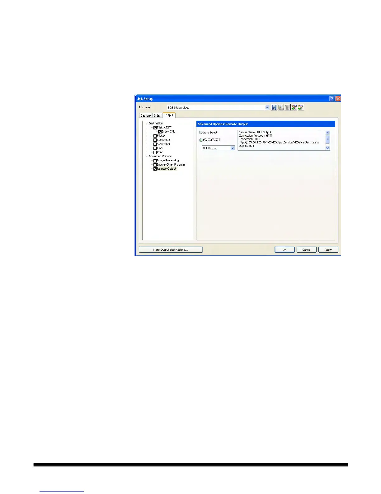 searchable PDF files. Remote Output server configuration is contained in a