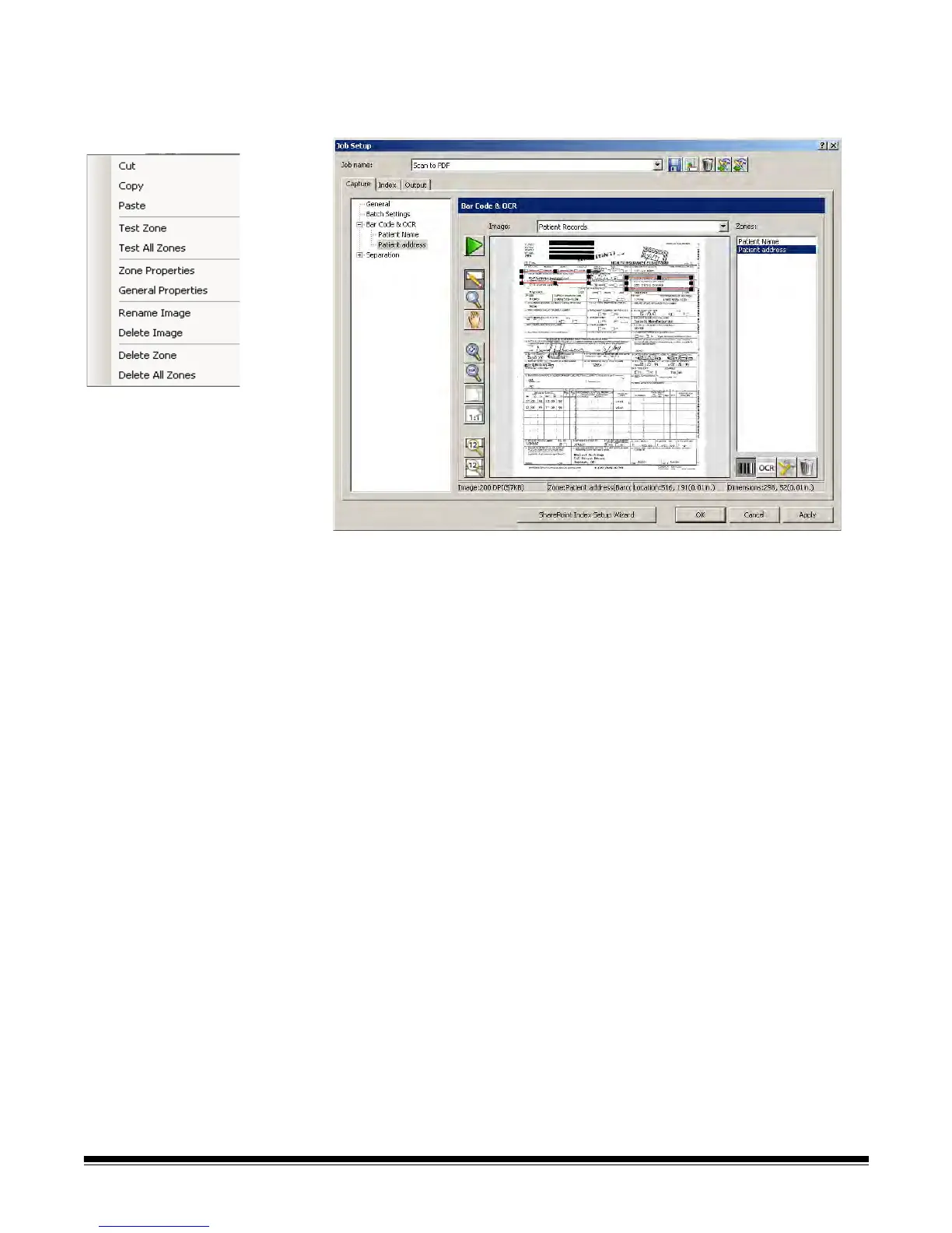 image. It is not necessary to cut and paste a bar code zone or OCR zone to