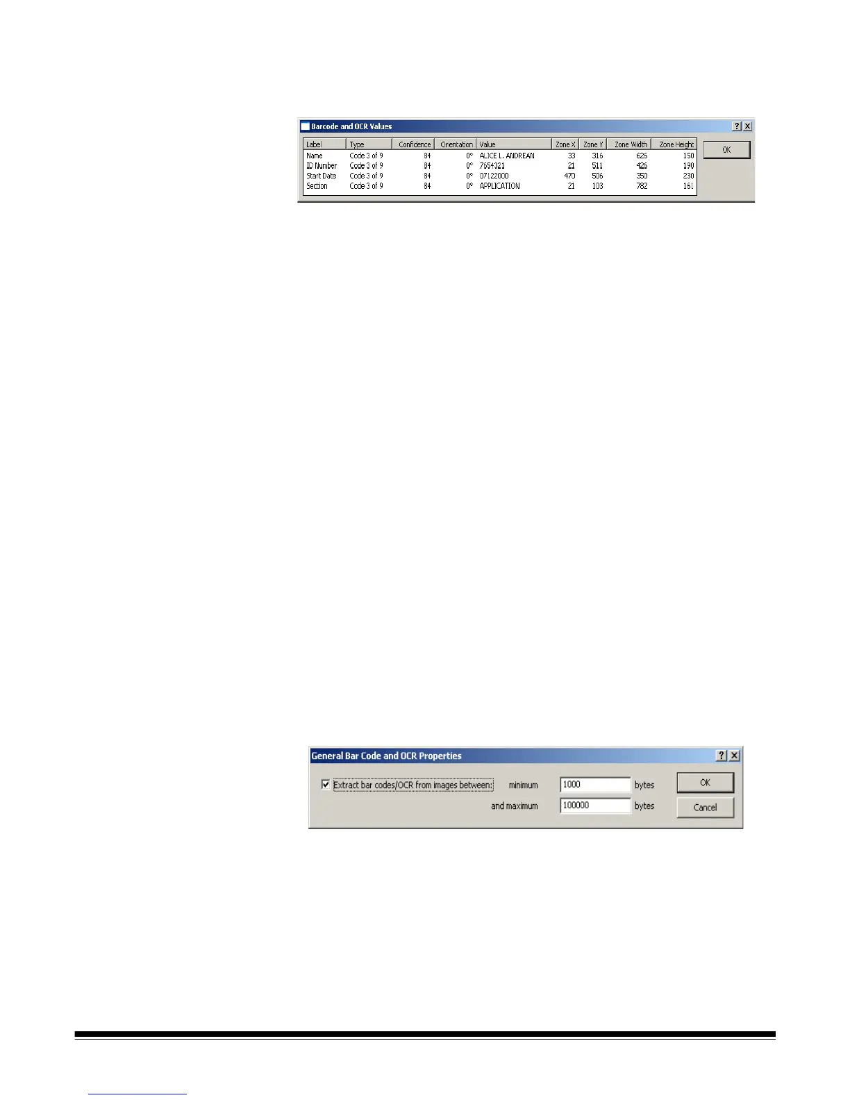 OCR Zone Setup dialog box will be displayed. See the sections entitled, “Bar