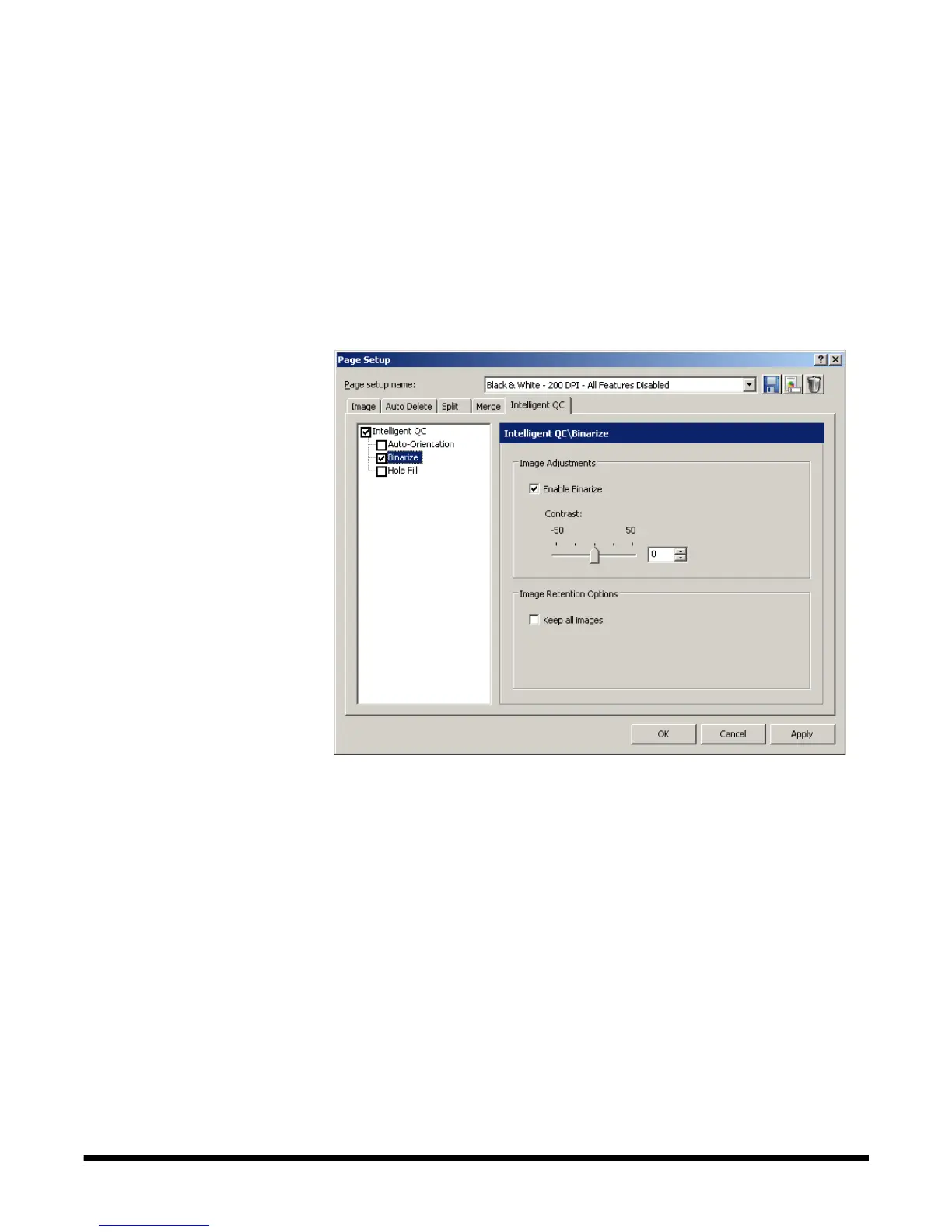 Intelligent QC tab The Intelligent QC tab of the Page Setup dialog box allows you to set up these