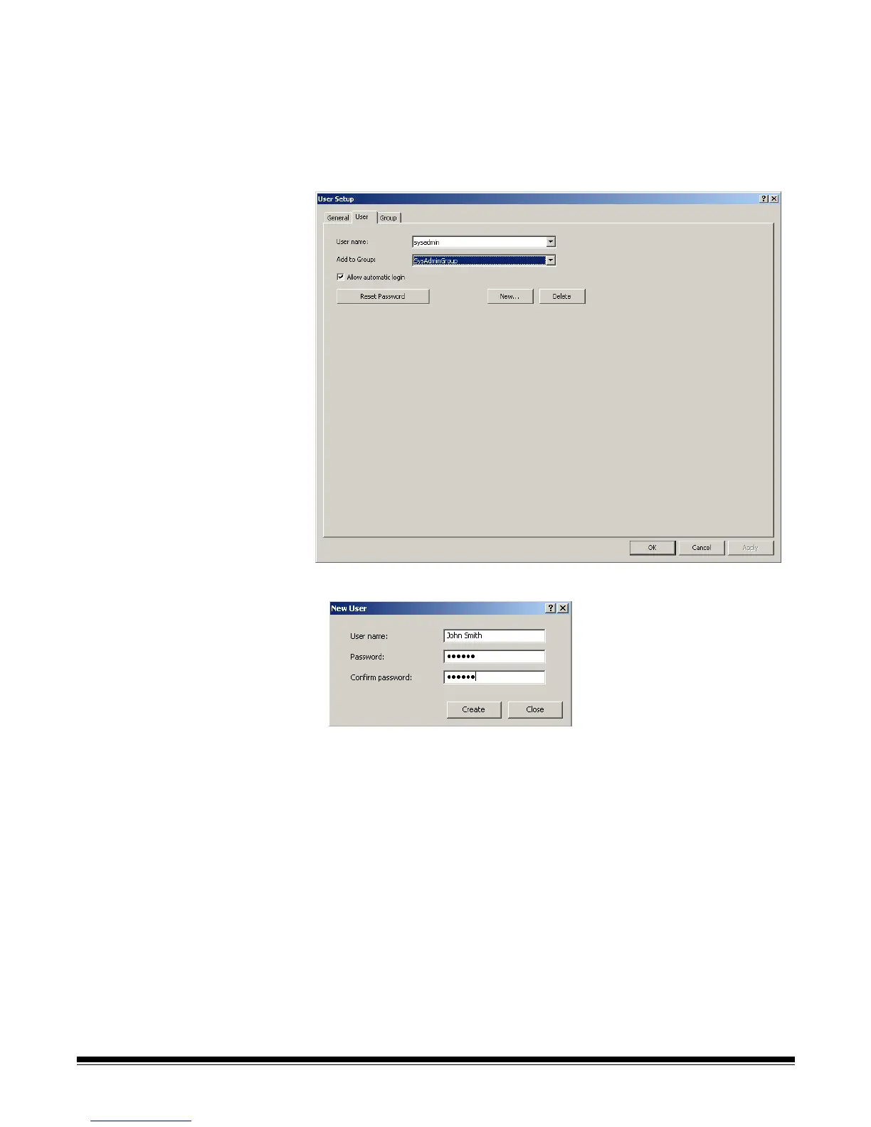 3. Click New. The New User dialog box will be displayed.