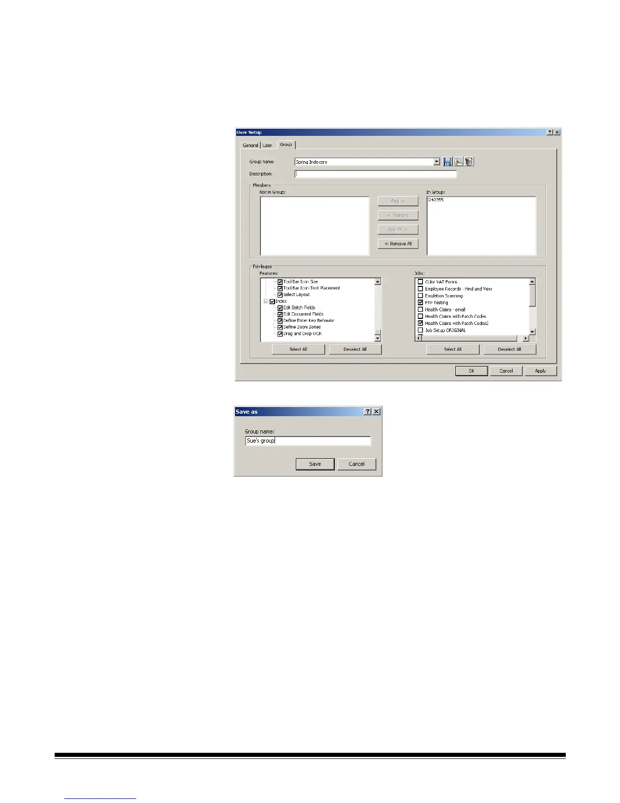 Group tab Use the Group tab to add and delete user groups as well as add and remove