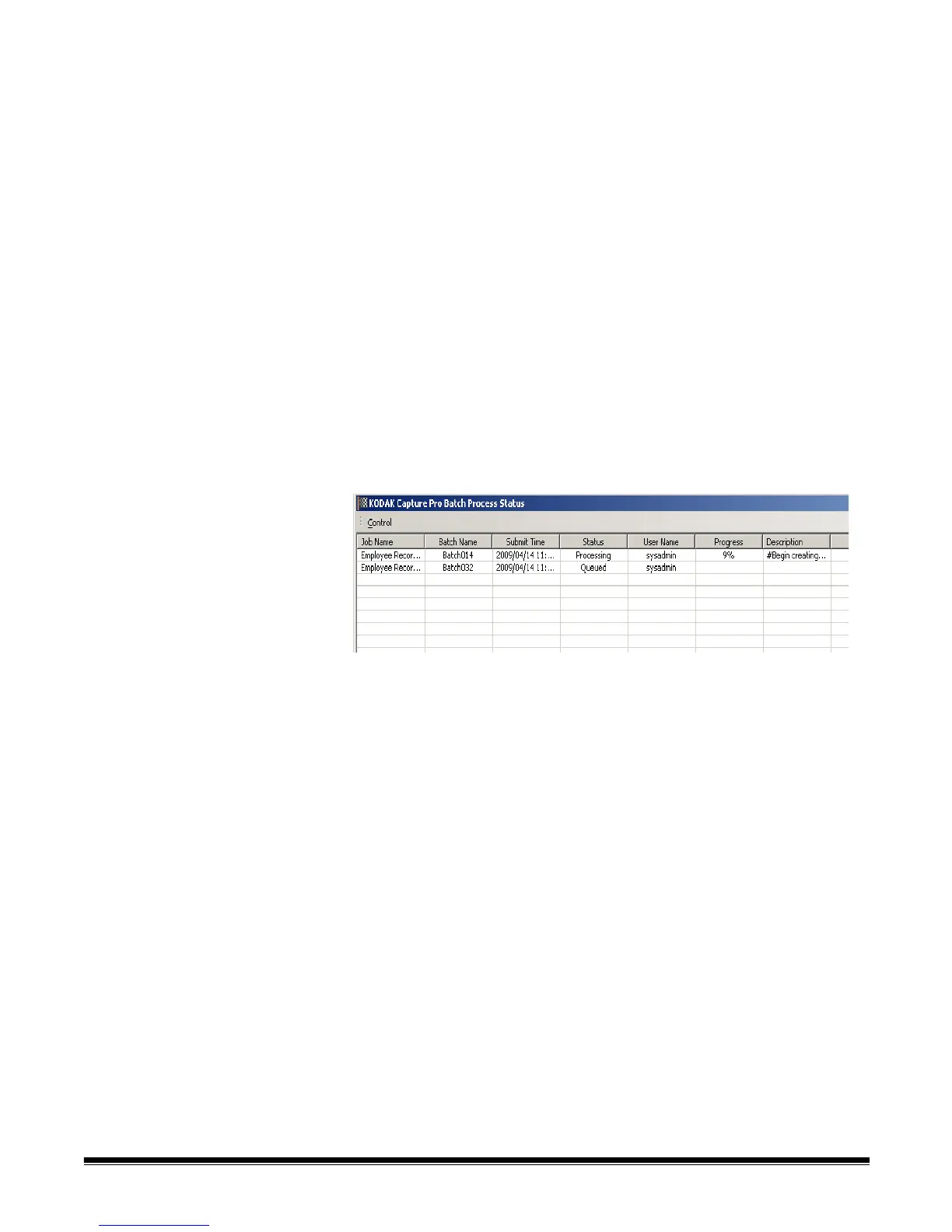 •Select Batch>View Batch Output Status. The Kodak Capture Pro Batch