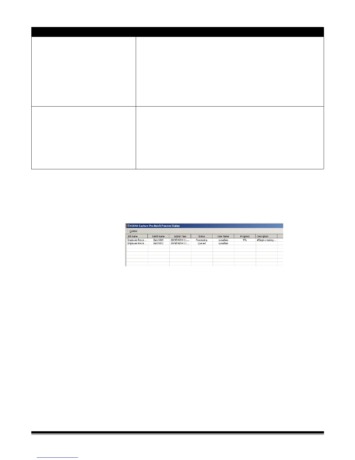 Clearing errors The Kodak Capture Pro Batch Status window provides information on batches