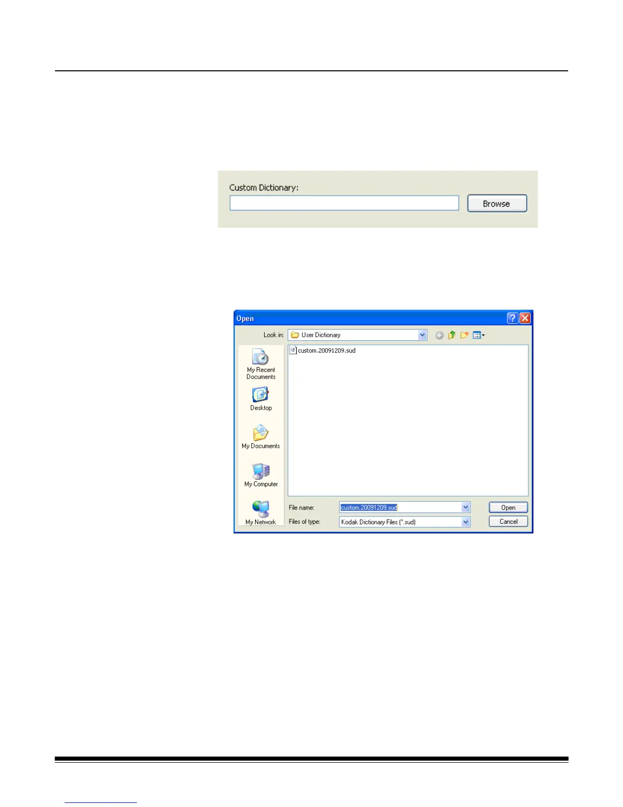 1. Select the Custom Dictionary Browse button. The Open dialog box will be