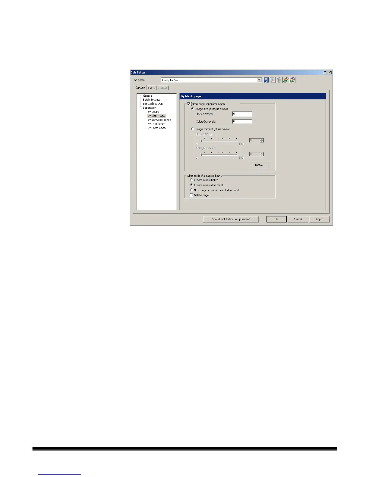 By Blank page When scanning images, you can insert blank pages to serve as separators.