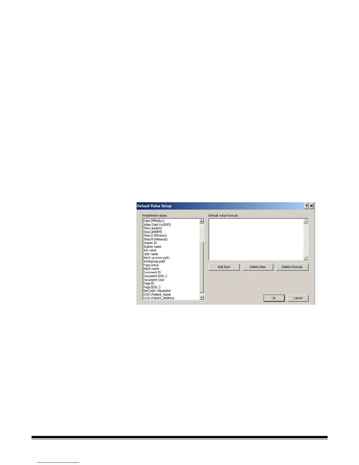 the Default Value Setup dialog box.